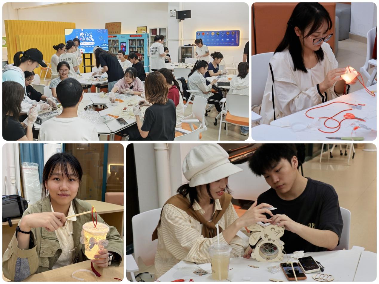 在团委举办的“月满华诞,青春颂国”活动中,同学们分为“玉兔送福”“精工巧匠”“环保有我”等组,利用不同的工具开展手工灯笼制作,特别是在“环保有我”组,同学们利用塑料瓶、快递盒等材料设计灯笼,“变废为宝”的巧思不仅点亮了光影,更点亮了“绿色护家国”的青春担当。90分钟的创作时光里,剪刀声、笑声与同学们轻松的交流声交织,把对双节的期待、对祖国的祝福,悄悄缝进了灯笼的每一处细节。