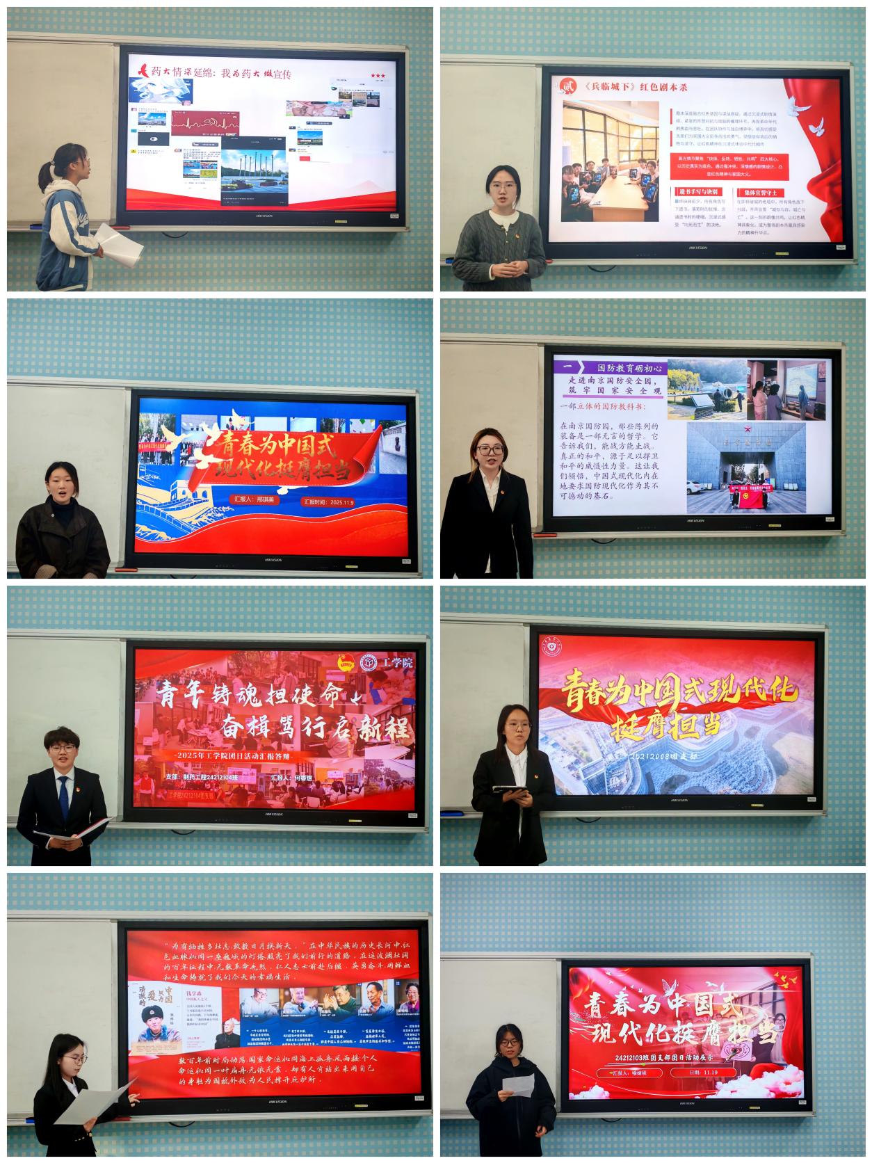 为深入学习贯彻党的二十届四中全会精神和习近平总书记“奋力书写为中国式现代化挺膺担当的青春篇章”的殷切嘱托,11月19日下午,工学院团委在E108教室成功举办“青春为中国式现代化挺膺担当”主题团日活动评比。经过前期线上材料评审,共有来自2024级、2025级的8个优秀团支部脱颖而出,入围本次线下评比。