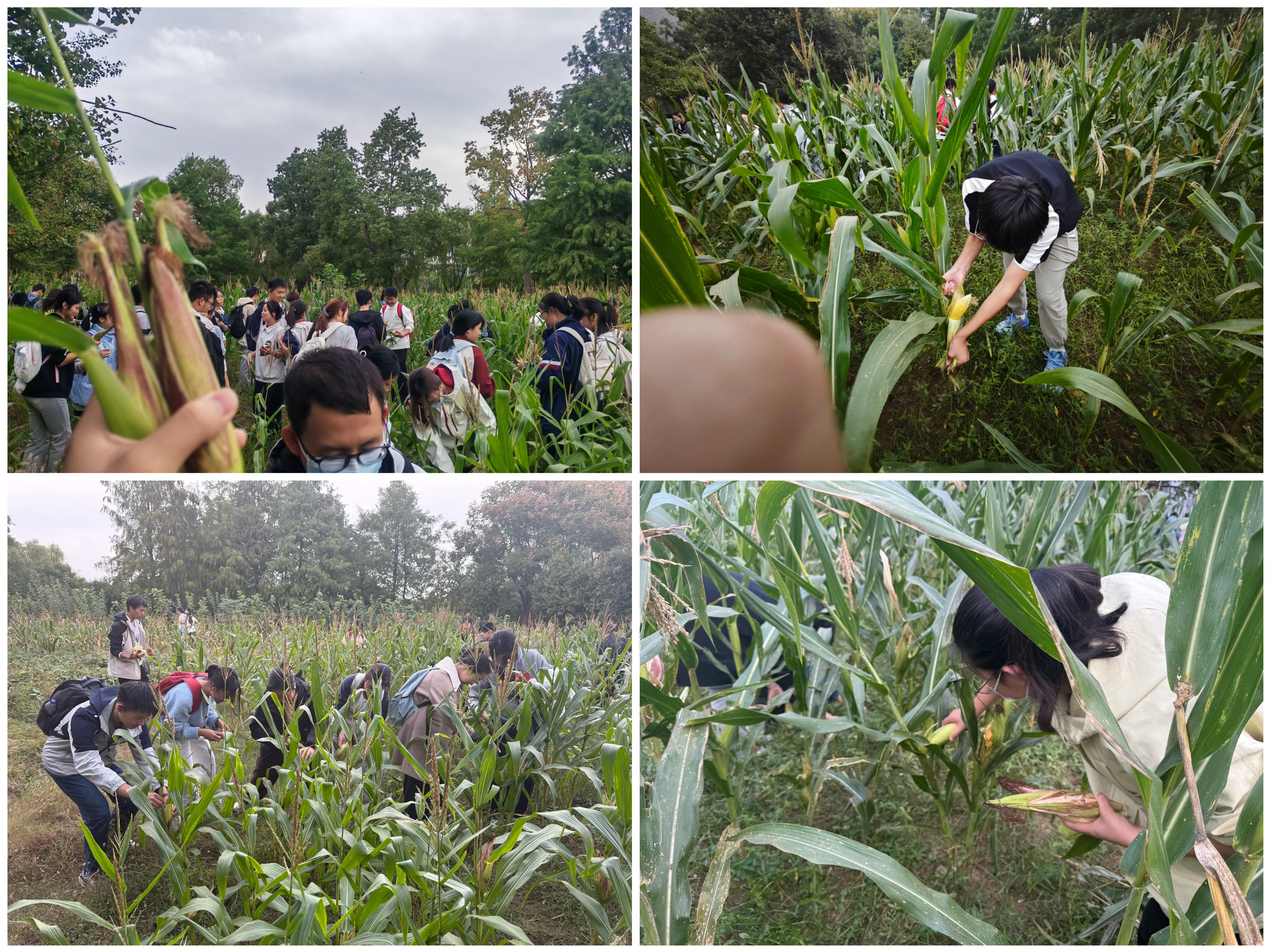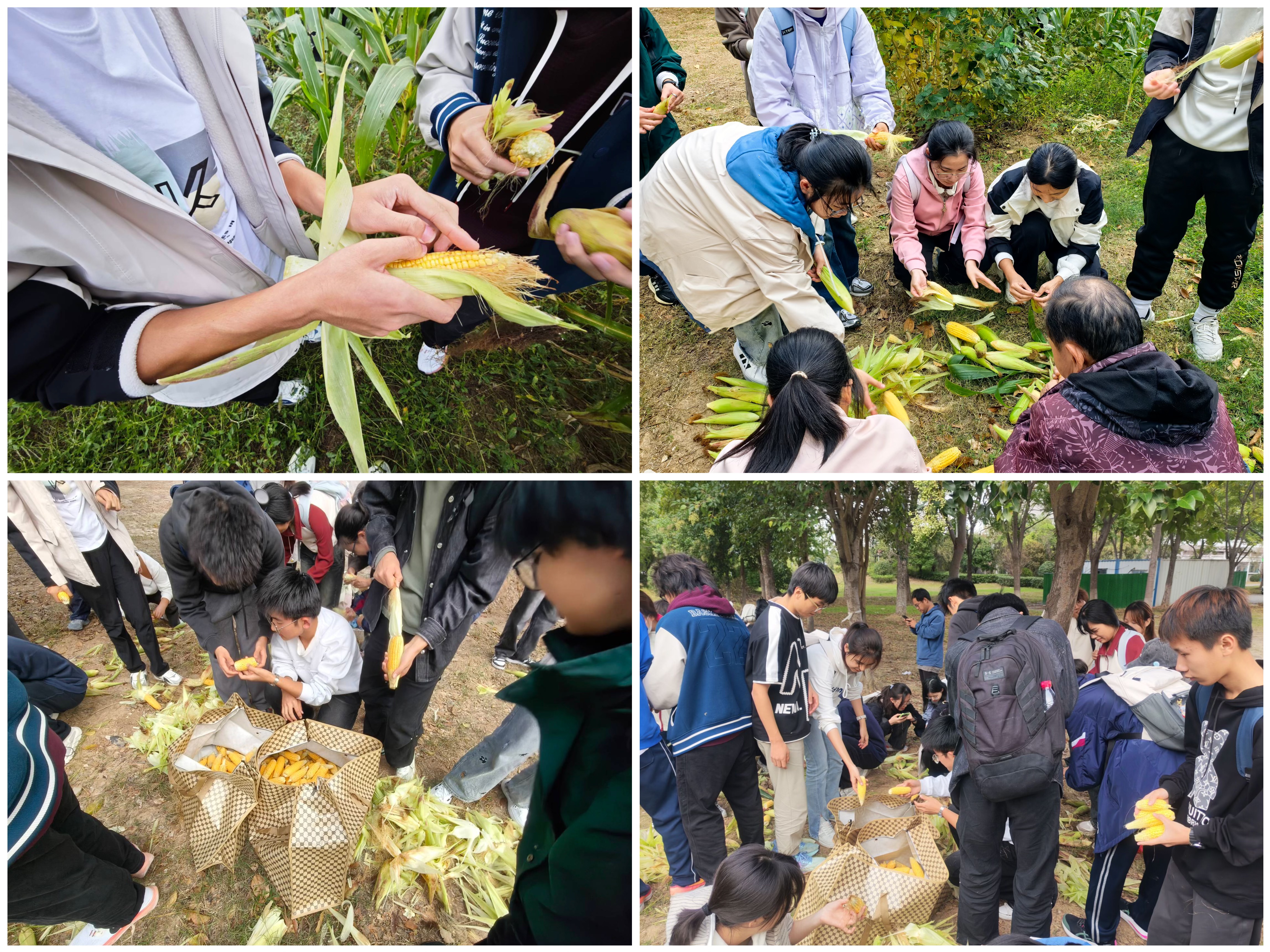 活动首先聚焦劳动教育田玉米种植与采收。师生们分工协作,在基建后勤处专业老师指导下,戴手套辨果穗、弯腰掰玉米、分类装袋清理秸秆。老师结合实操讲解玉米生长周期与培育技巧,学生们在汗水里体会“春种秋收”的不易,采收的玉米装满十余袋。
