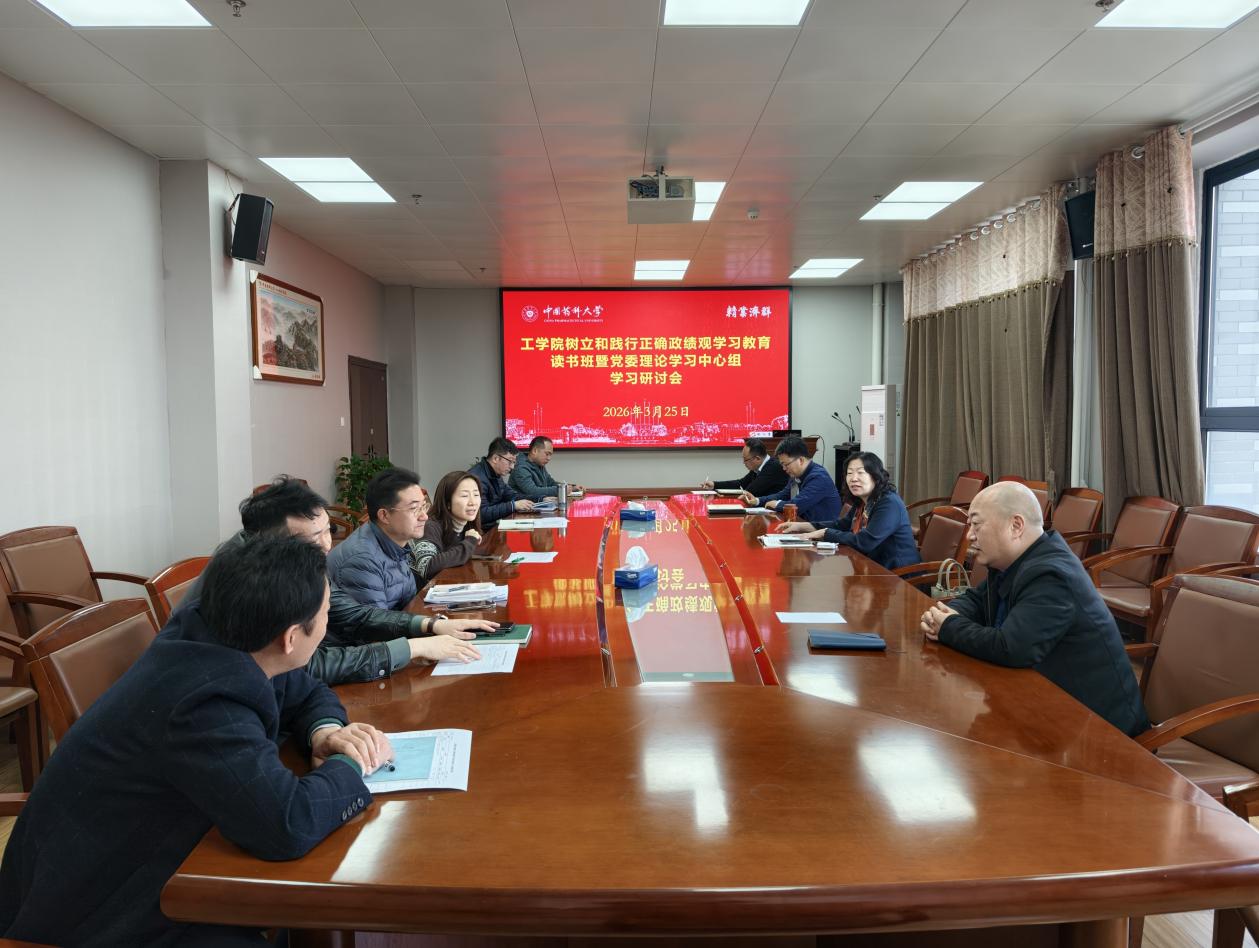 为深入学习领会习近平总书记关于树立和践行正确政绩观的重要论述,推动学院学习教育走深走实,3月25日上午,工学院党委在实训楼304会议室组织召开树立和践行正确政绩观学习教育读书班开班式暨党委理论学习中心组学习研讨会,学院领导班子成员及学习教育工作专班成员等参加会议,会议由院党委书记张宝玲主持。