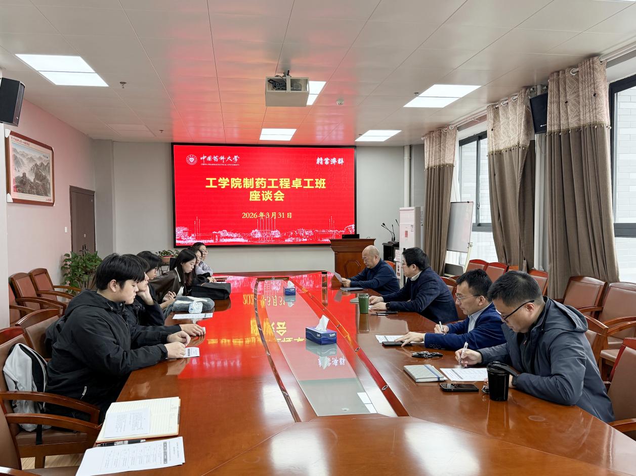 为进一步明确卓工班学生学业与未来发展方向,切实解决同学们遇到的实际困惑,3月31日上午,学院在实训楼304会议室组织召开2023级卓工班师生座谈会。院长蔡挺、副院长黄德春,制药与环境系主任陈维、副主任郭瑞昕等出席会议,辅导员及2023级卓工班全体学生参加会议。