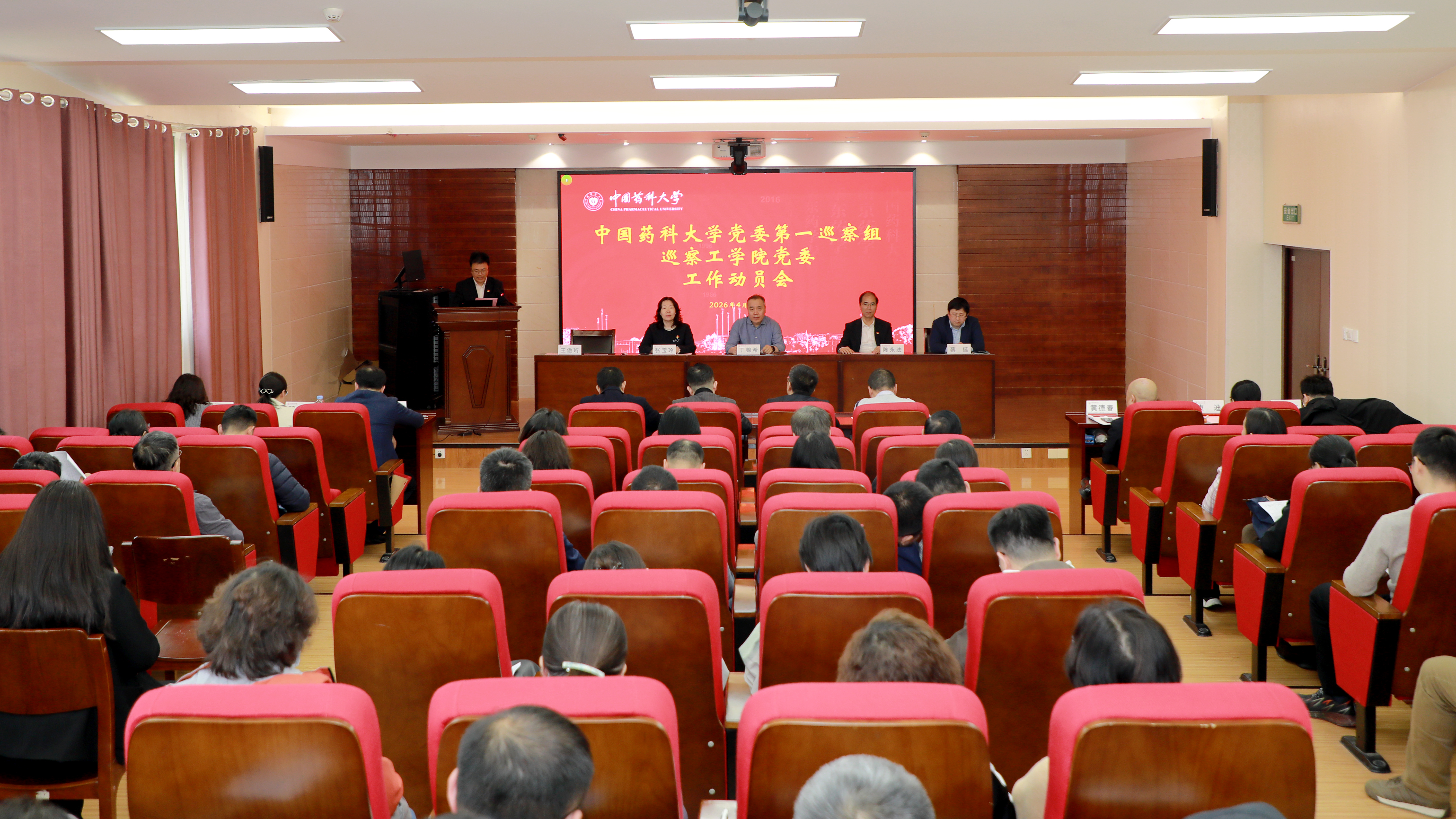 4月10日,校党委第一巡察组巡察工学院党委工作动员会在江宁校区实训楼401报告厅召开。校党委常委、副校长丁锦希出席会议并讲话,巡察组组长陈永法作工作安排,学院党委书记张宝玲作表态发言。学院党委副书记王傲珩主持会议。