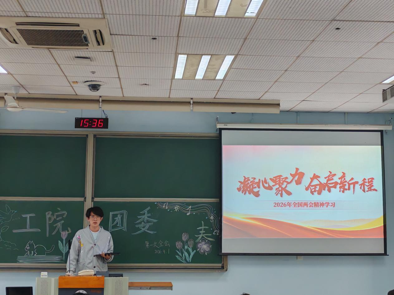 为深入学习贯彻2026年全国两会精神,引导各团支部准确把握国家发展大局,同时明确新学期工作方向,4月1日下午,工学院团委在教学楼E206召开2026年全国两会精神学习会。工学院团委全体成员及各团支部书记共同参与本次会议。