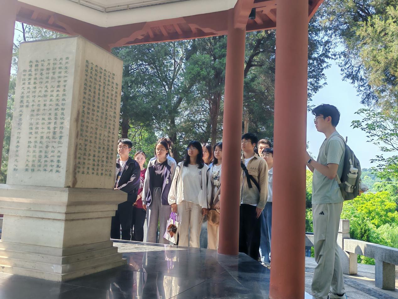 活动当日,同学们统一前往实践地点。在方山烈士公墓,主讲人讲述了长眠于此的马金牛、郑德胜等革命烈士的事迹,带领大家重温那段烽火岁月中的忠诚与牺牲。学员们肃立默哀,深刻感悟革命先烈为了民族解放和国家独立所展现出的坚定信仰与无畏精神。随后前往仲铭亭,作为江宁重要红色教育地标,该亭为纪念抗日英烈邓仲铭而建。主讲人向同学们介绍了烈士的英勇事迹,引导大家思考新时代青年的使命担当。学员们驻足亭前,静心感悟,在历史的回响中进一步理解了责任与担当的内涵。