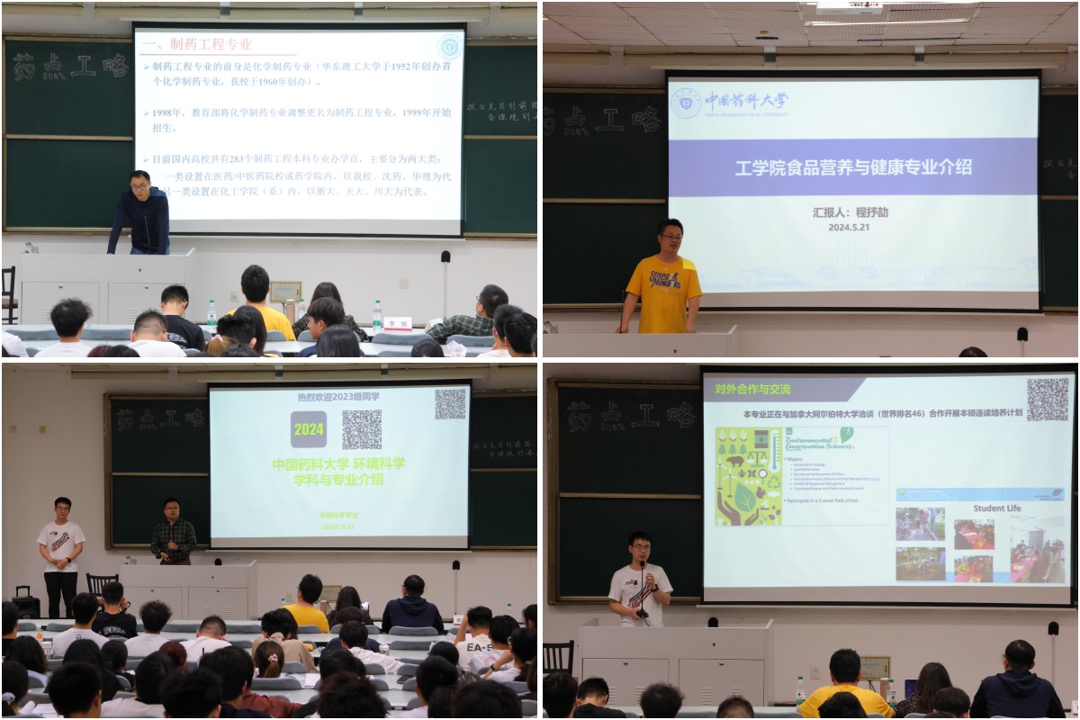 为了帮助工学院2023级学生更加全面地了解各专业的授课情况、发展前景以及毕业去向,从容地做出适合自己的选择、更加客观理性地进行学业规划,工学院学生会于5月21日组织开展了2024年“药点攻略”专业分流师生见面会。 本次活动邀请了工学院制药工程专业李振老师、食品营养与健康专业程抒劼、胡德俊老师以及环境科学专业郭瑞昕、尚景阁老师等主讲。各位老师从专业背景、人才培养、发展方向等方面对各专业情况作了介绍,并通过毕业生升学、就业案例生动形象地为同学们展示了各个专业的不同与长处;活动还特别邀请到了往届优秀毕业生现场进行经验交流与分享。见面会上,同学们结合自身发展与当前阶段困惑踊跃地向老师们提问,老师们专业的解答得到了现场同学热烈的掌声。 本次活动帮助大一学子认清了自身情况,对于学院的专业有了更加清晰的认识,为广大学子寻找适合自己的方向、做好专业选择打下了扎实基础。
